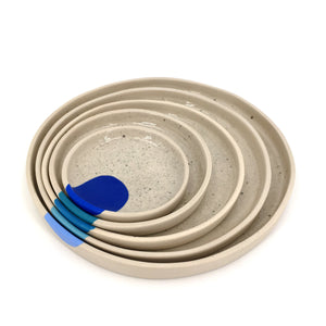 These pieces are hand made and enamelled. They are not perfect and that's good. Each piece is unique and may differ slightly from the photo. Materials : White sandstone, glossy enamel interior, matte exterior. Dishwasher & microwave friendly